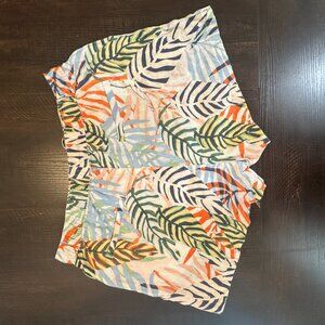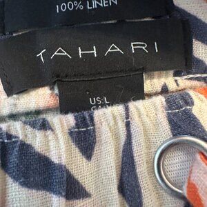 Tahari 100% Linen Tropical Leaf Print Pull-On Shorts Women’s Size L
