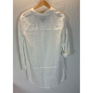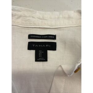 Tahari 100% Linen Tunic Button Down White Shirt Roll Tab Sleeve LG Langenlook