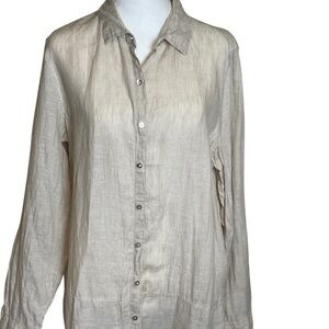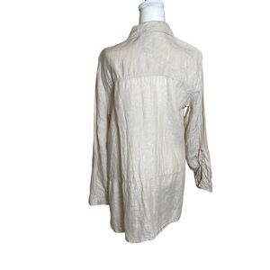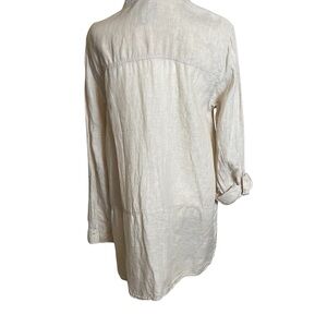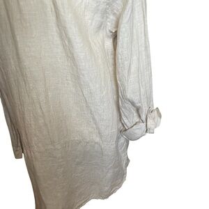 Tahari 100% Linen Tunic Top Button Up Adjustable Long Sleeve Slit Sides Ivory LG