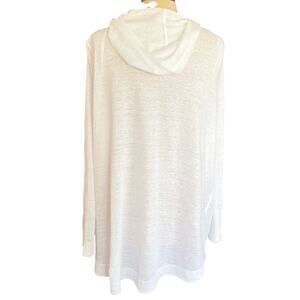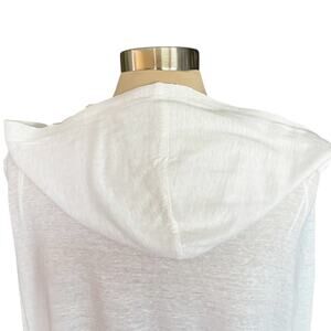 Tahari 100% Linen White Open Front Cardigan Hooded Sz 1X Beachy Coverup Summer