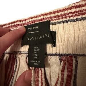Tahari 100% Linen Wide Leg Crop Pants Elastic Waist Striped Cream - Size Small