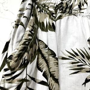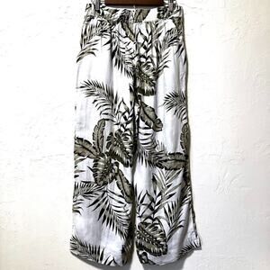 Tahari 100% linen cropped wide leg pants in a tropical palm print, lightweight resort style, very good pre-owned.