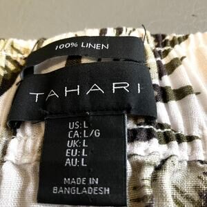 Tahari 100% Linen Wide Leg Pants L White Khaki Tropical Palm Print Resort Beach