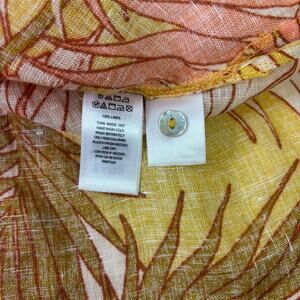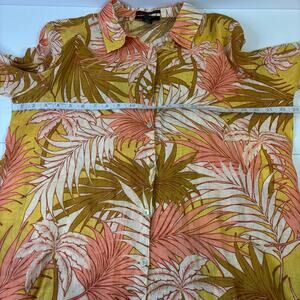 Tahari 100% Linen Yellow, Green, Cream Tropical Leaf Print Shirt Size XL