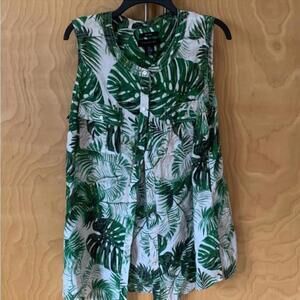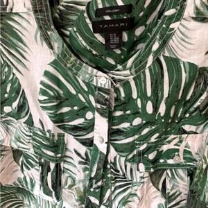 Tahari 100% Linen women top blouse size 2X Button Down floral sleeveless shirt
