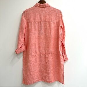 Tahari 100% linen button front tunic top heathered orange laganlook size medium