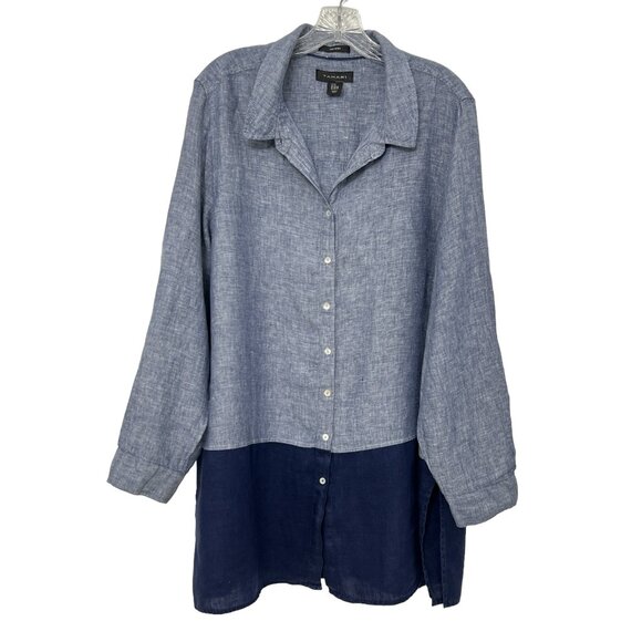 Tahari 100 % linen color block 2 tone women's tunic shirt size 2X