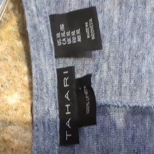 excellent pre-owned condition, size XL from tahari. 100% linen, soft and stretchy breathable material. Long sleeve, asymmetric hemline cardigan in light blue. see photos for more details and approximate measurements