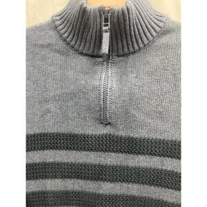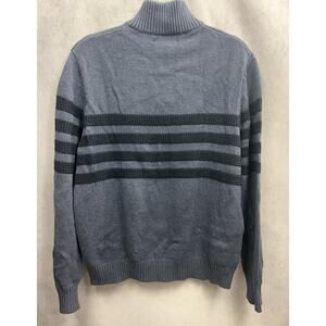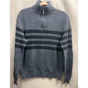 Tahari 1/4 Zip Cotton Striped Pullover Mock Neck Sweater Blue Mens Size M
