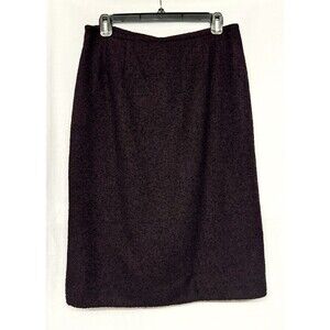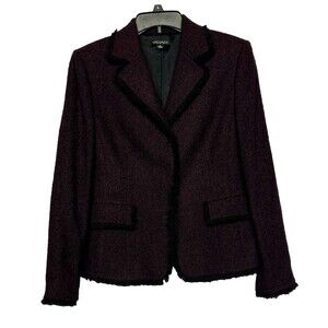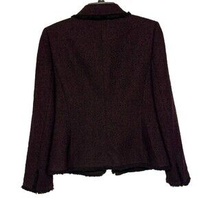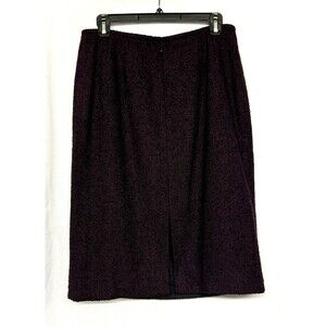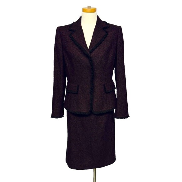 Tahari 2 Pc Wool Blend Skirt & Jacket Suit Set Textured Fringe Hem Dark Plum 10