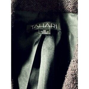 Tahari 2 Pc Wool Blend Skirt & Jacket Suit Set Textured w Fringe Hem Dark Plum w Black Fringe Trim 10
