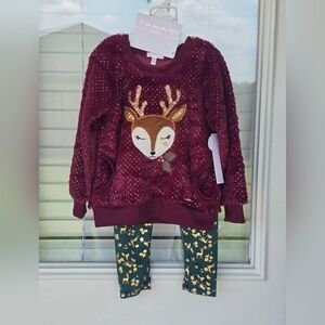 Tahari 2 Piece Set Outfit Sweater & Pants Girls 4T Green Red New