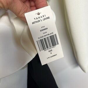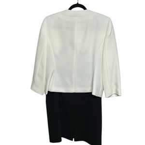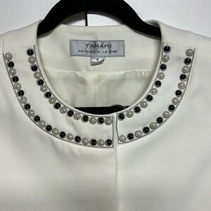 Tahari 2 Piece Suit Winter White pearl embellished blazer , Black skirt