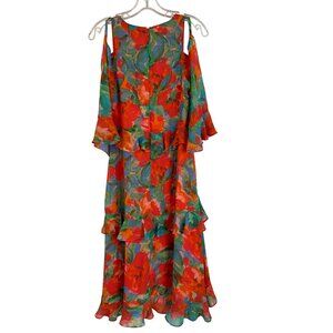 Tahari 2P Cold Shoulder Chiffon Floral Dress Ruffle High Low RDD10669 NWT