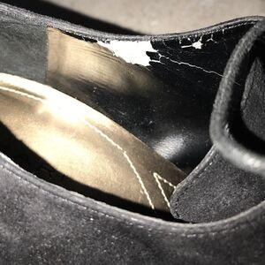 These oxford style lace up suede shoes are basically new, The heel and soles are perfect but as you see in one picture on the inside of one Shoe has peeled a little bit. The shoes are fantastic