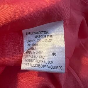 gold tone hardware, round neck, zipper and hook rear closure, dry clean, 53% cotton 47% polyester, lining 100% acetate