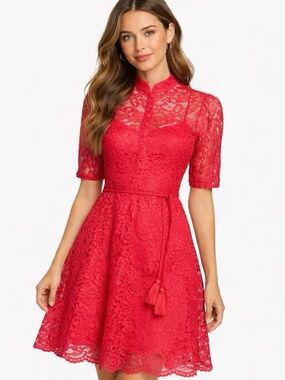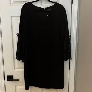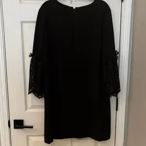 Tahari ASL Black Lace Bell-Sleeve Shift Dress - 16