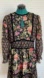 Tahari ASL casual black floral mini dress with black velvet trim, sheer puffed sleeves and flared skirt. Front keyhole at chest, rear zipper. Lined. Has the sale tag but not the original black Tahari logo tag.