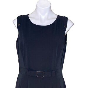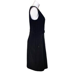 Tahari ASL Black Sleeveless Sheath Dress, Faux Belt Pockets Women's Size 10