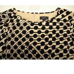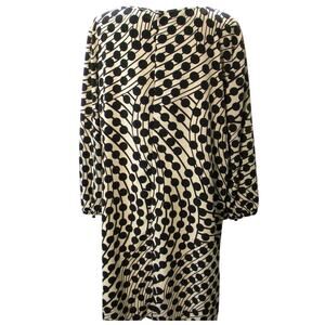 Tahari ASL Black Tan Swirl Dot Print Long Sleeve Shift Dress Size 16 Workwear