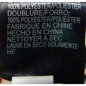 Fabric & Care: 100 % polyester shell and lining (Dry clean only)