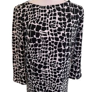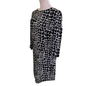 Tahari ASL Black and White Animal Print 3/4 Sleeve Sheath Dress