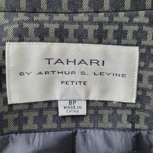 Tahari ASL Blazer Size 8P Green Black Pattern Petite 3 Hidden Snap Closure Lined