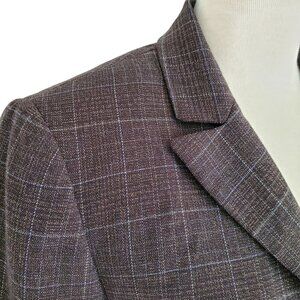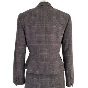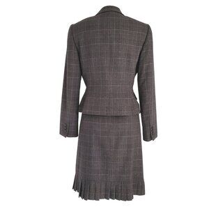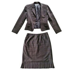 Tahari ASL Blazer / Skirt Suit 2 Pc Set Soft Brown Plaid Pleated Skirt Business