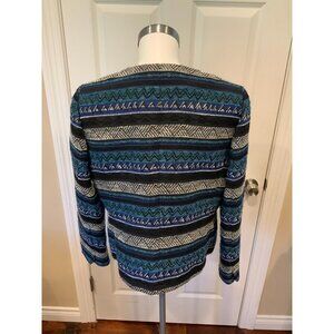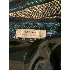 Tahari ASL Blue & Green Geometric Embroidered Jacket, Size 12