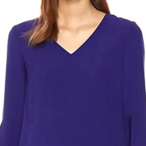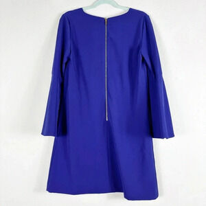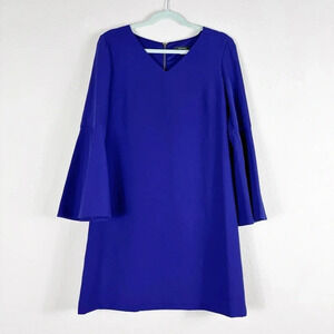 Tahari ASL Blue Purple Bell Sleeve V-neck Shift Dress size 6