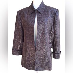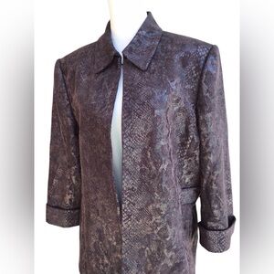 Tahari ASL Brown Snake-Print Open Front Blazer Jacket Size 16 NEW