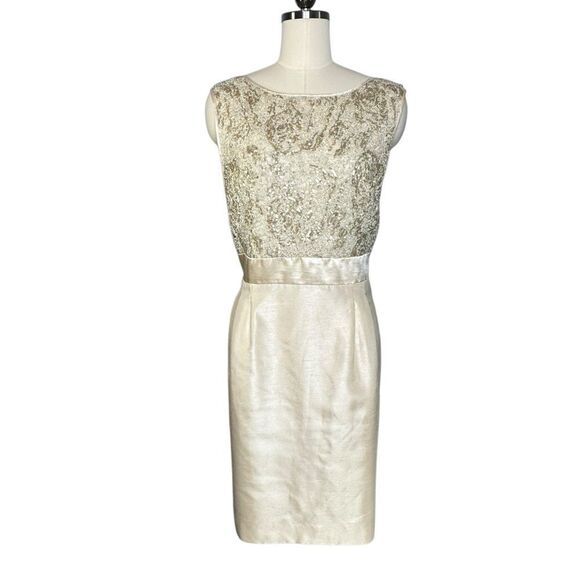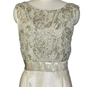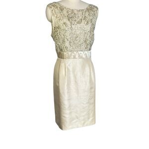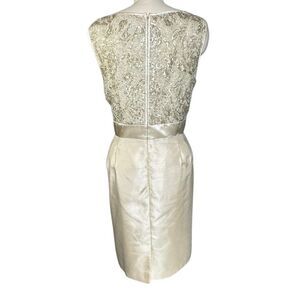Tahari ASL Cream Shantung Sequin Lace Sheath Cocktail Dress | 16