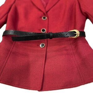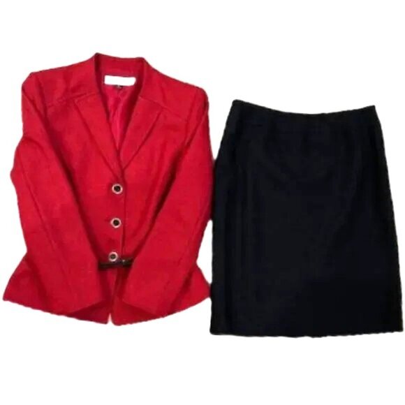 Tahari ASL Crimson Red and Black 2-Piece Belted Skirt Suit