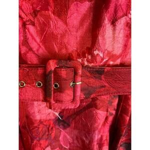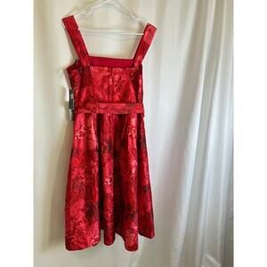 Tahari ASL Crinkled Floral Red Midi Belted Cotton Dress Size 8 MSRP $170