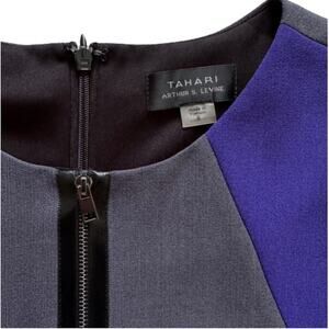 Tahari ASL Dress Career Sheath Knee Length Sleeveless Black Gray Color Block 8