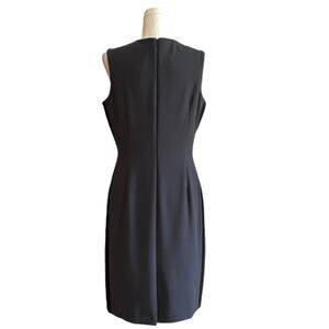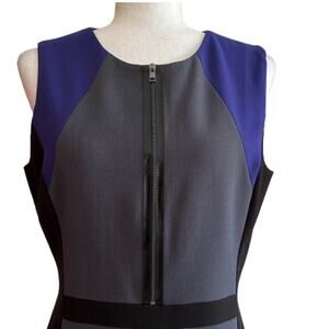 Tahari ASL Black Gray Crew Neck Sleeveless Front Zipper Accent Career Sheath Dress