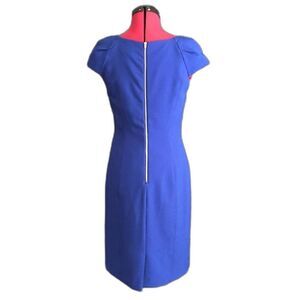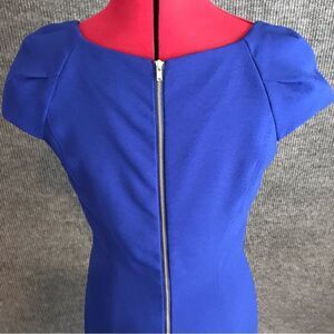 Tahari ASL Dress Women Size 4P Royal Blue Cap Sleeves Exposed Back Zipper Sheath