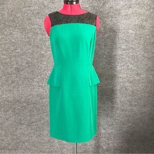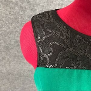 Tahari ASL Dress Women’s Size 4P Green & Black Sequins Sleeveless Peplum