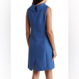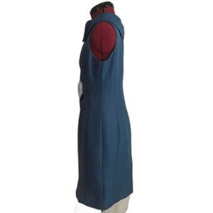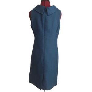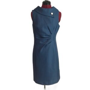 Tahari ASL Envelope Neck Sleeveless Sheath Dress Women Size 6 Blue Ruched Waist