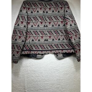 Tahari ASL Geometric Tribal Printed Black Red Tan Open Blazer Jacket Womens 10