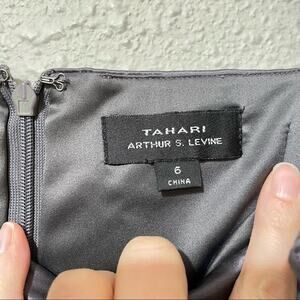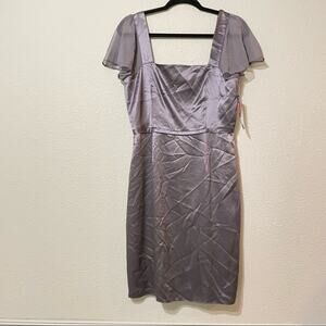 Tahari ASL Grey Silk Flutter Sleeve Knee Length Sheath Dress Formal 6