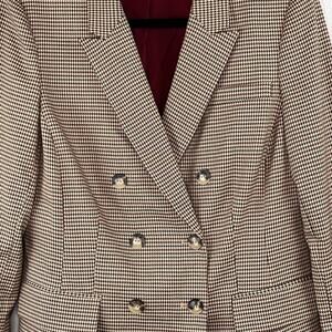 Tahari ASL Houndstooth Double Breast Lined Dual Vent Blazer Jacket Camel 10 NWT