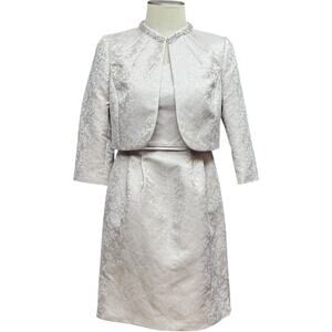Tahari ASL Jacquard Brocade 2-Piece Jacket Dress Pink Metallic 4P