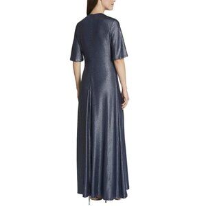 Tahari ASL Knit Jersey-Foil Knot-Front A-Line Gown, Navy Blue