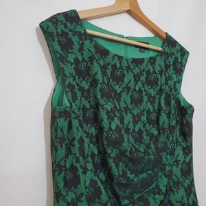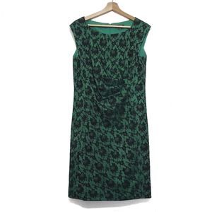 Tahari ASL | Lace Overlay Green Side Scrunch Sleeveless Sheath Dress