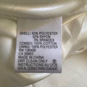 - Shell: 63% polyester, 32% rayon, 5% spandex; Combo: 100% cotton; Lining: 100% polyester