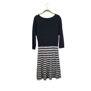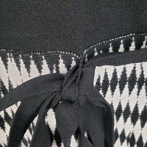 Tahari Arthur S Levine NWT Sweater Dress Black White Diamond Harlequin A-Line Size Large