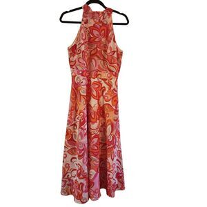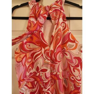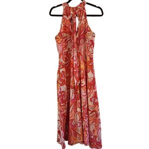 Tahari ASL NWT halter tie neck sleeveless pink and orange dress size 8