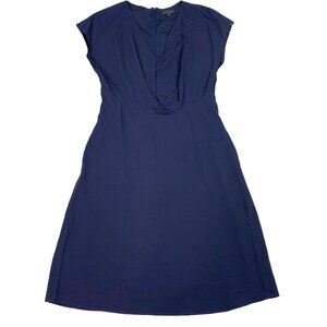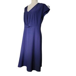 Tahari ASL Navy Blue Dress Short Sleeve V-Neck Twist Front Fit & Flare Size10
