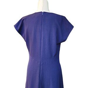 Tahari ASL Women's Navy Blue Dress Short Sleeve V-Neck Twist Front Fit & Flare Size 10